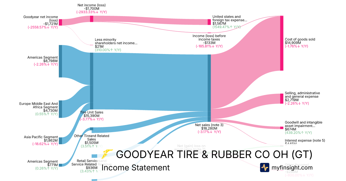 For the year ending 2025-12-31, GT made $18,280M in revenue. -$1,721M in net income. Net profit margin of -9.41%.
