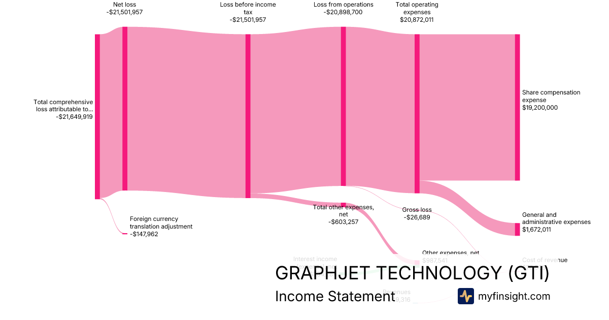 For the quarter ending 2025-06-30, GTI made $49,316 in revenue. -$21,649,919 in net income. Net profit margin of -43900.40%.