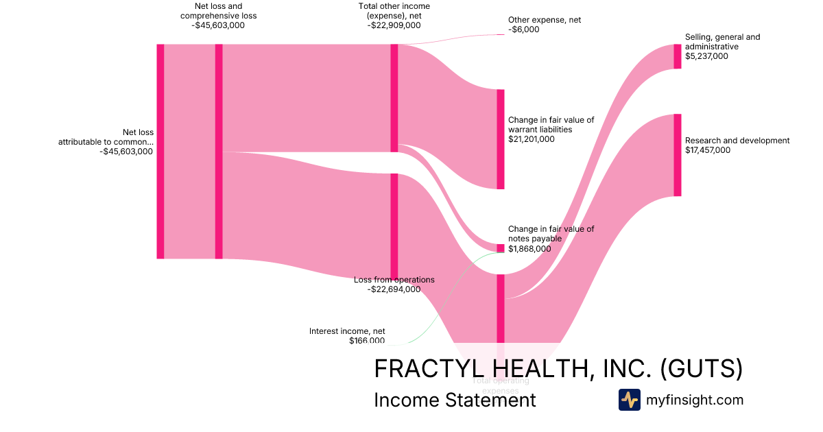 For the quarter ending 2025-09-30, GUTS made $22,860,000 in revenue. -$45,603,000 in net income. Net profit margin of -199.49%.
