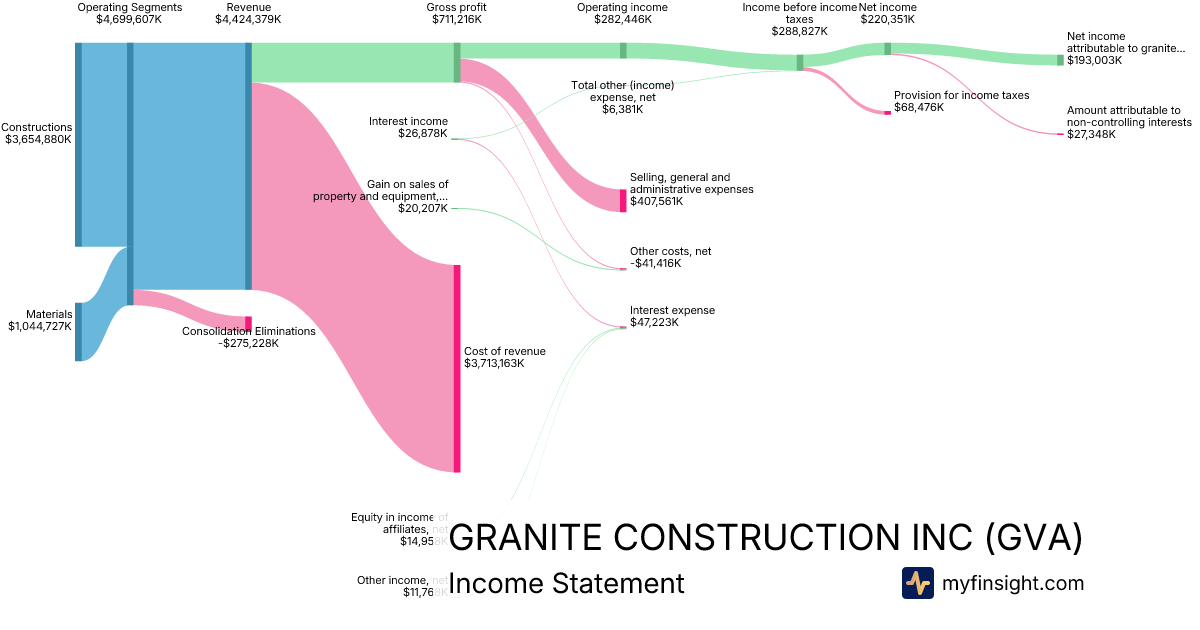 For the year ending 2025-12-31, GVA made $4,424,379K in revenue. $193,003K in net income. Net profit margin of 4.36%.