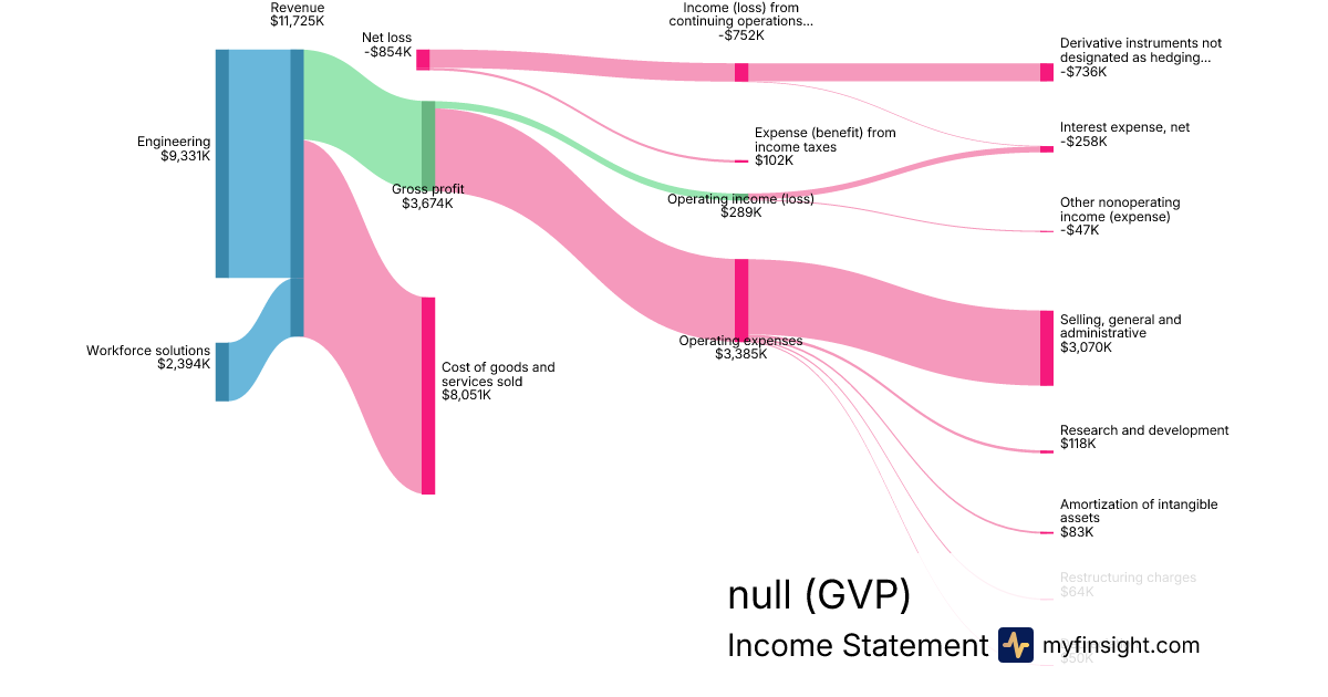 For the quarter ending 2024-06-30, GVP made $11,725K in revenue. -$854K in net income. Net profit margin of -7.28%.