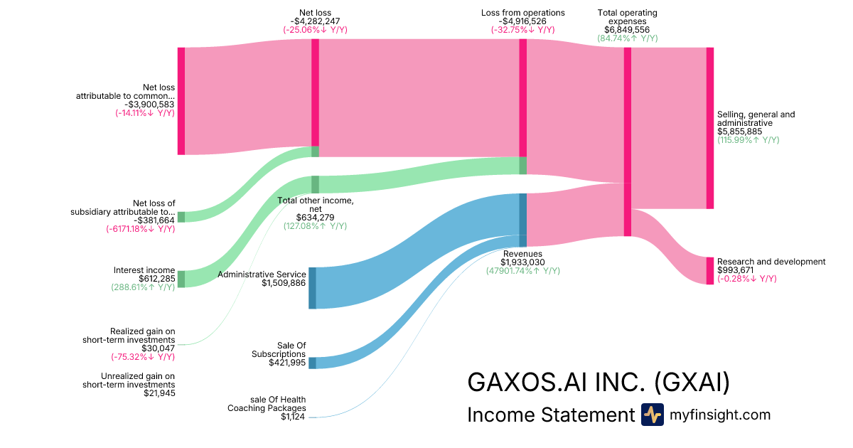 For the year ending 2025-12-31, GXAI made $1,933,030 in revenue. -$3,900,583 in net income. Net profit margin of -201.79%.