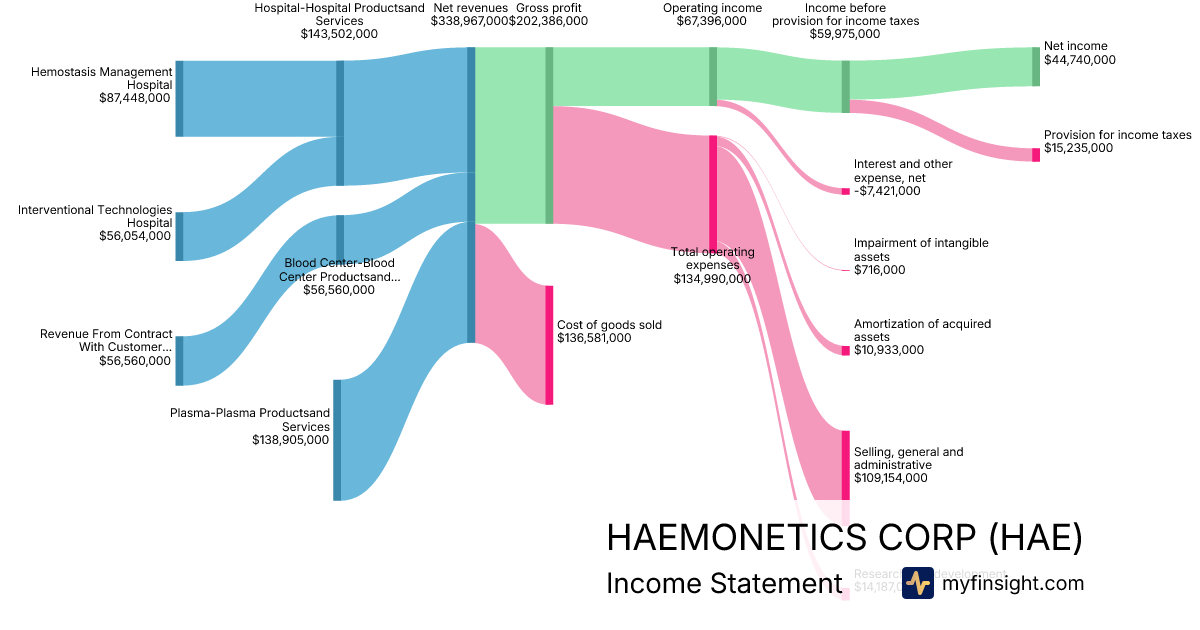For the quarter ending 2025-12-27, HAE made $338,967,000 in revenue. $44,740,000 in net income. Net profit margin of 13.20%.