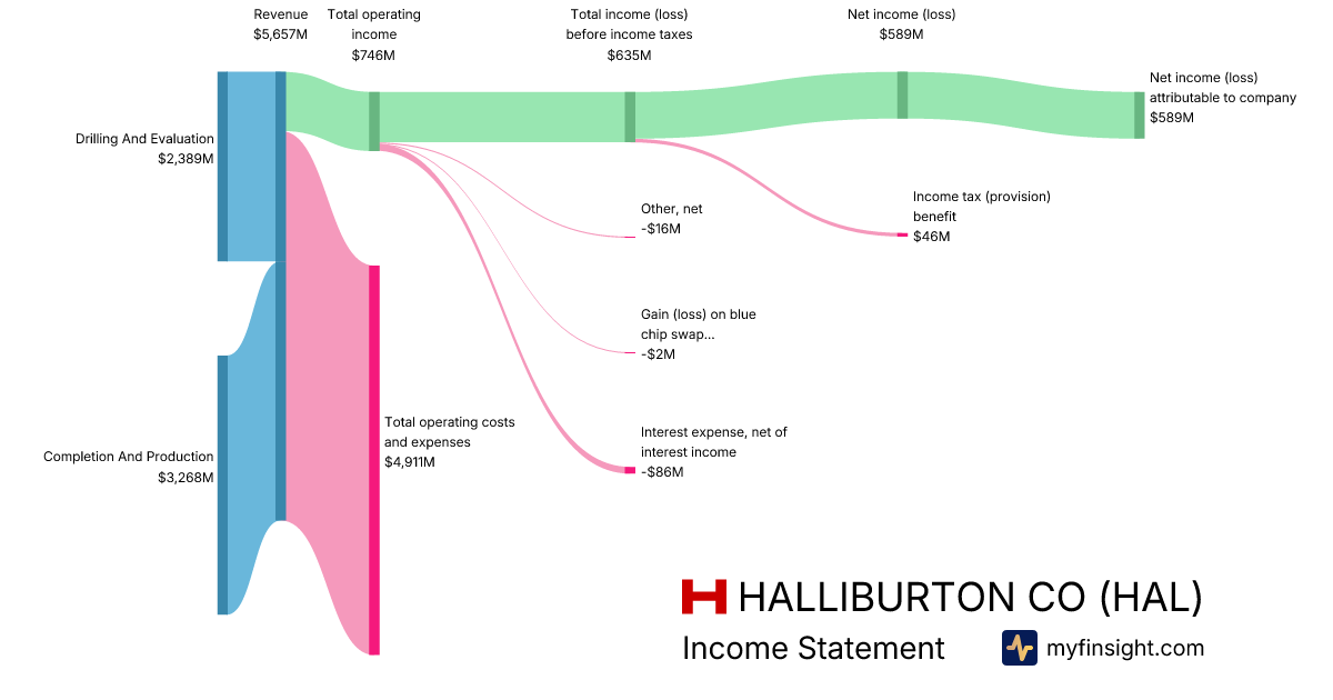 For the year ending 2025-12-31, HAL made $22,184M in revenue. $1,283M in net income. Net profit margin of 5.78%.