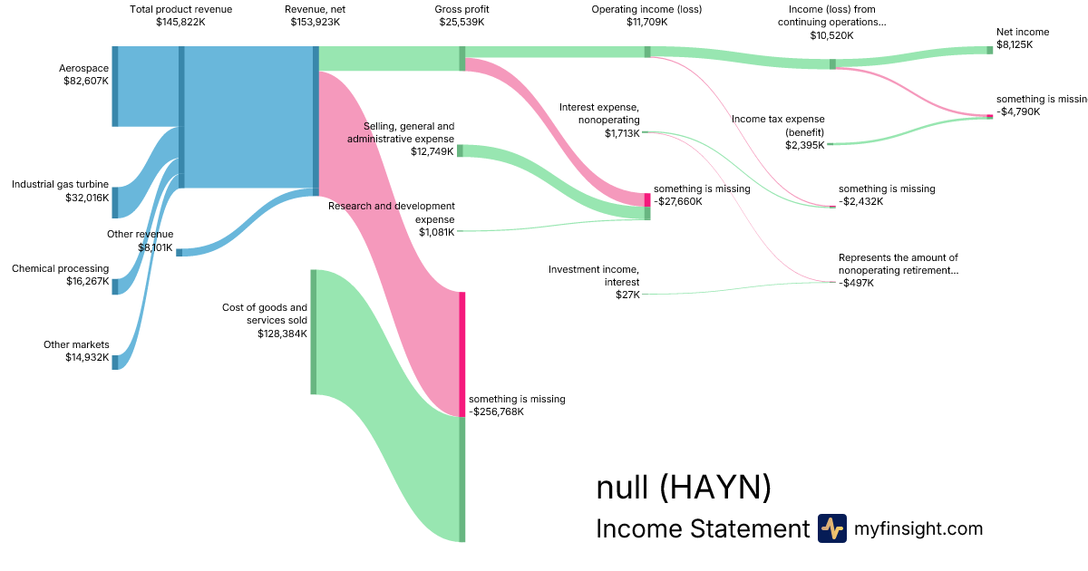 For the quarter ending 2024-06-30, HAYN made $153,923K in revenue. $8,125K in net income. Net profit margin of 5.28%.