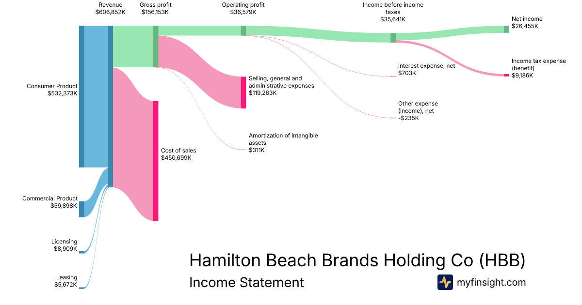 For the year ending 2025-12-31, HBB made $606,852K in revenue. $26,455K in net income. Net profit margin of 4.36%.