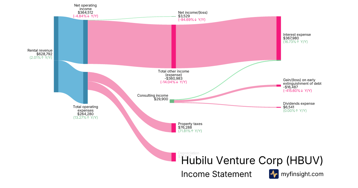 For the quarter ending 2025-09-30, HBUV made $628,792 in revenue. $3,529 in net income. Net profit margin of 0.56%.