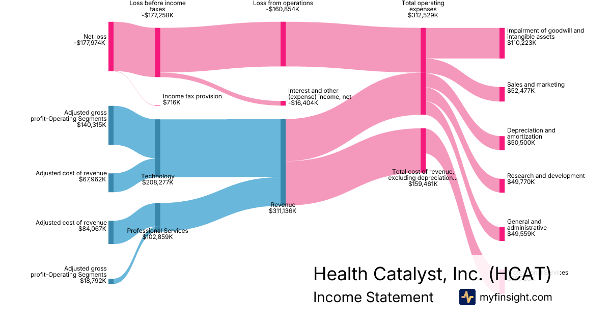 For the year ending 2025-12-31, HCAT made $311,136K in revenue. -$177,974K in net income. Net profit margin of -57.20%.