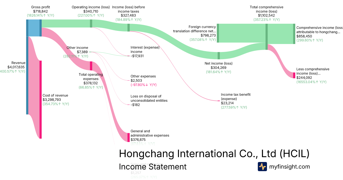 For the quarter ending 2025-12-31, HCIL made $4,017,635 in revenue. $858,450 in net income. Net profit margin of 21.37%.