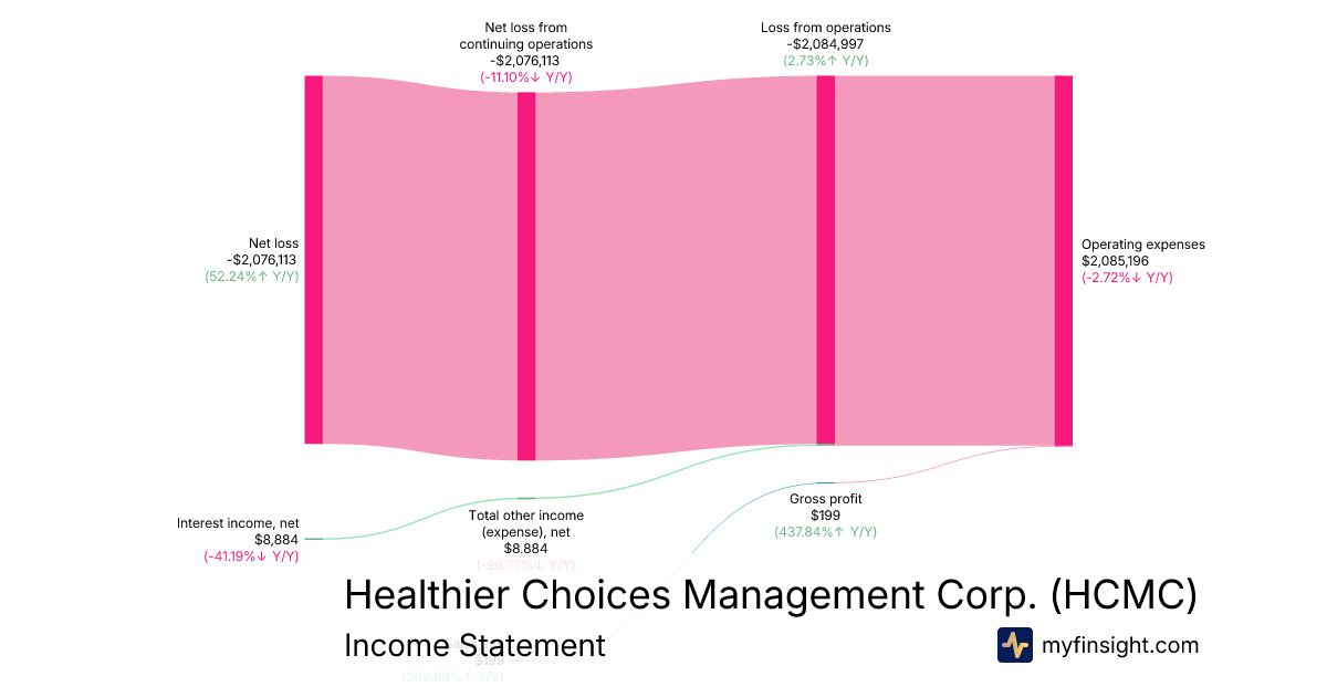 For the quarter ending 2025-09-30, HCMC made $199 in revenue. -$2,076,113 in net income. Net profit margin of -1043272.86%.