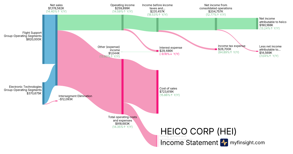 For the quarter ending 2026-01-31, HEI made $1,178,582K in revenue. $190,188K in net income. Net profit margin of 16.14%.