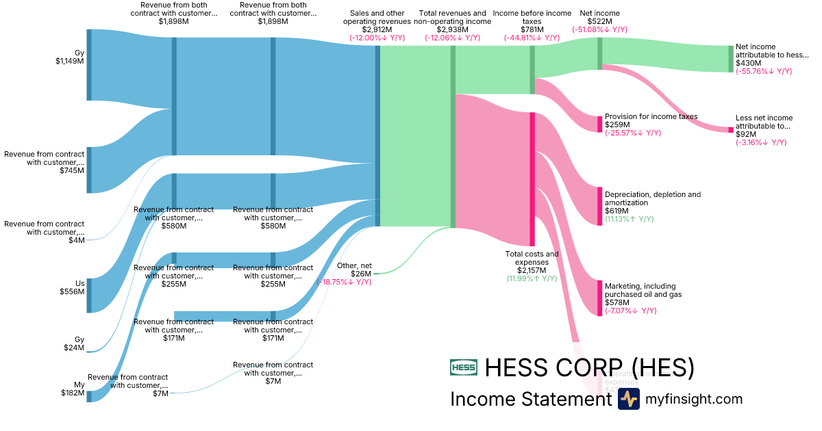 For the quarter ending 2025-03-31, HES made $2,912M in revenue. $430M in net income. Net profit margin of 14.77%.