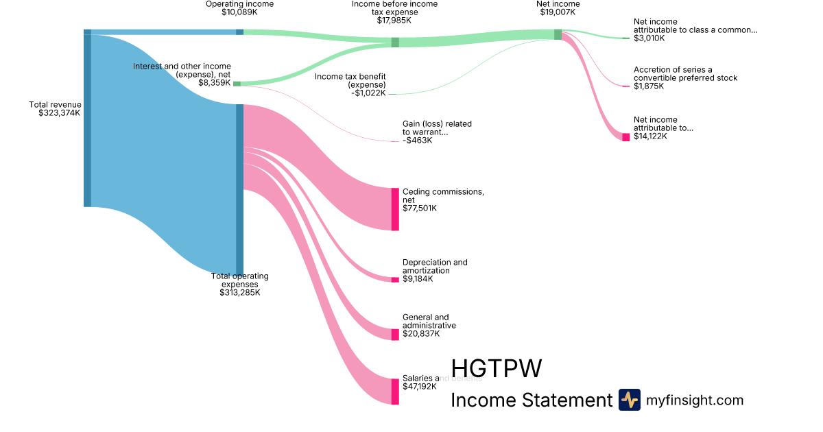 For the quarter ending 2024-09-30, HGTPW made $323,374K in revenue. $3,010K in net income. Net profit margin of 0.93%.