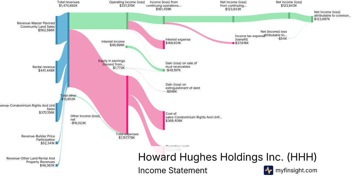 For the year ending 2025-12-31, HHH made $1,474,892K in revenue. $123,897K in net income. Net profit margin of 8.40%.