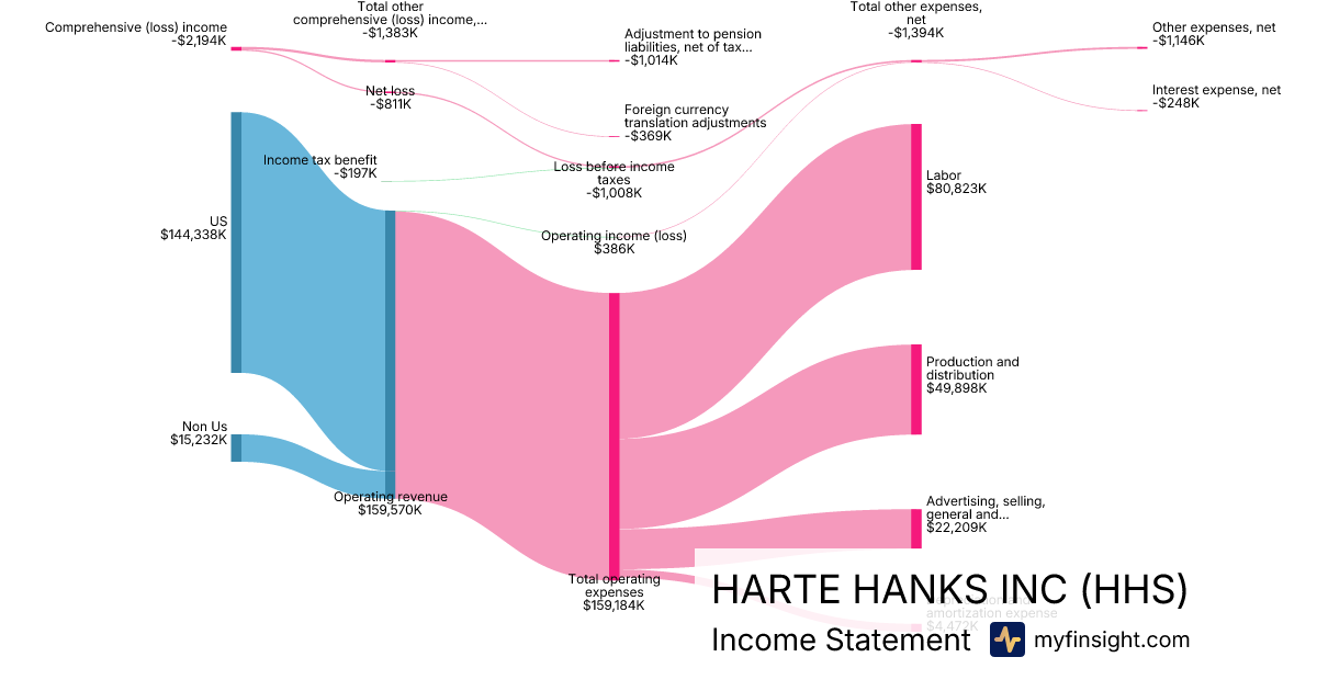 For the year ending 2025-12-31, HHS made $159,570K in revenue. -$2,194K in net income. Net profit margin of -1.37%.