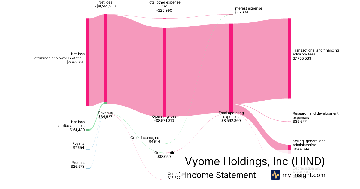 For the quarter ending 2025-09-30, HIND made $34,627 in revenue. -$8,433,811 in net income. Net profit margin of -24356.17%.