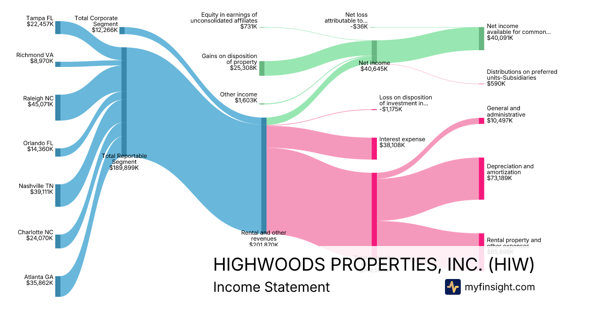 For the year ending 2025-12-31, HIW made $806,112K in revenue. $160,365K in net income. Net profit margin of 19.89%.