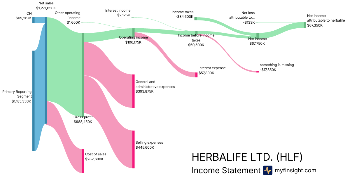 For the year ending 2025-12-31, HLF made $5,037,500K in revenue. $228,300K in net income. Net profit margin of 4.53%.