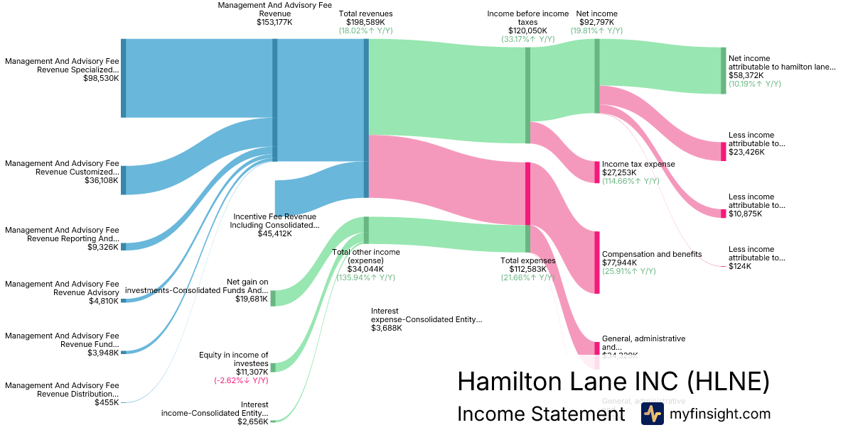 For the quarter ending 2025-12-31, HLNE made $198,589K in revenue. $58,372K in net income. Net profit margin of 29.39%.