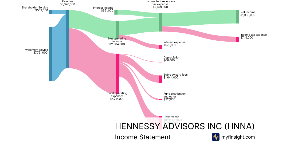 For the quarter ending 2025-12-31, HNNA made $8,320,000 in revenue. $1,930,000 in net income. Net profit margin of 23.20%.