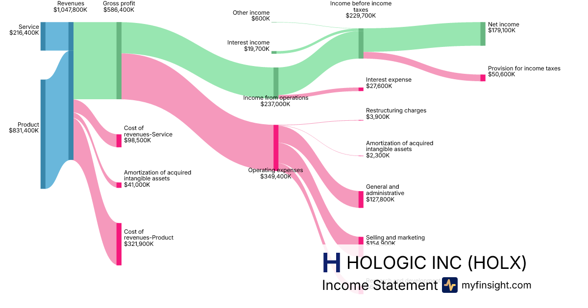 For the quarter ending 2025-12-27, HOLX made $1,047,800K in revenue. $179,100K in net income. Net profit margin of 17.09%.