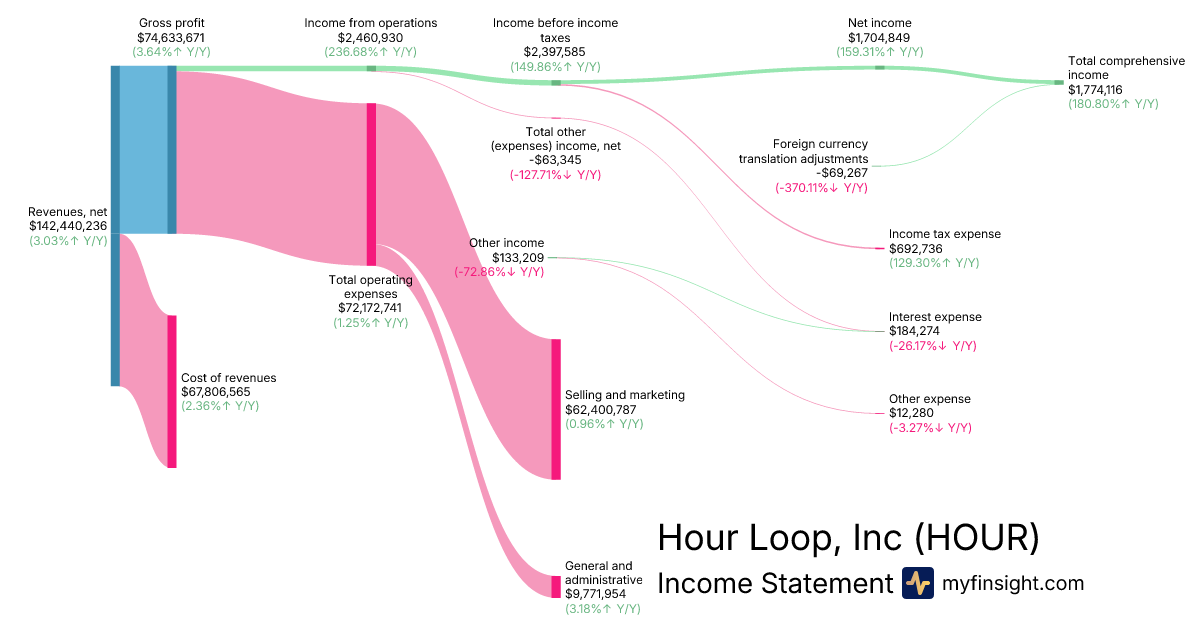For the year ending 2025-12-31, HOUR made $142,440,236 in revenue. $1,774,116 in net income. Net profit margin of 1.25%.
