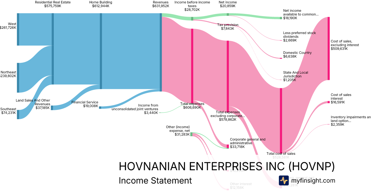 For the quarter ending 2026-01-31, HOVNP made $631,952K in revenue. $18,190K in net income. Net profit margin of 2.88%.
