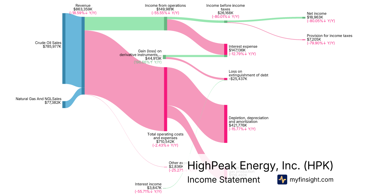For the year ending 2025-12-31, HPK made $863,359K in revenue. $18,963K in net income. Net profit margin of 2.20%.