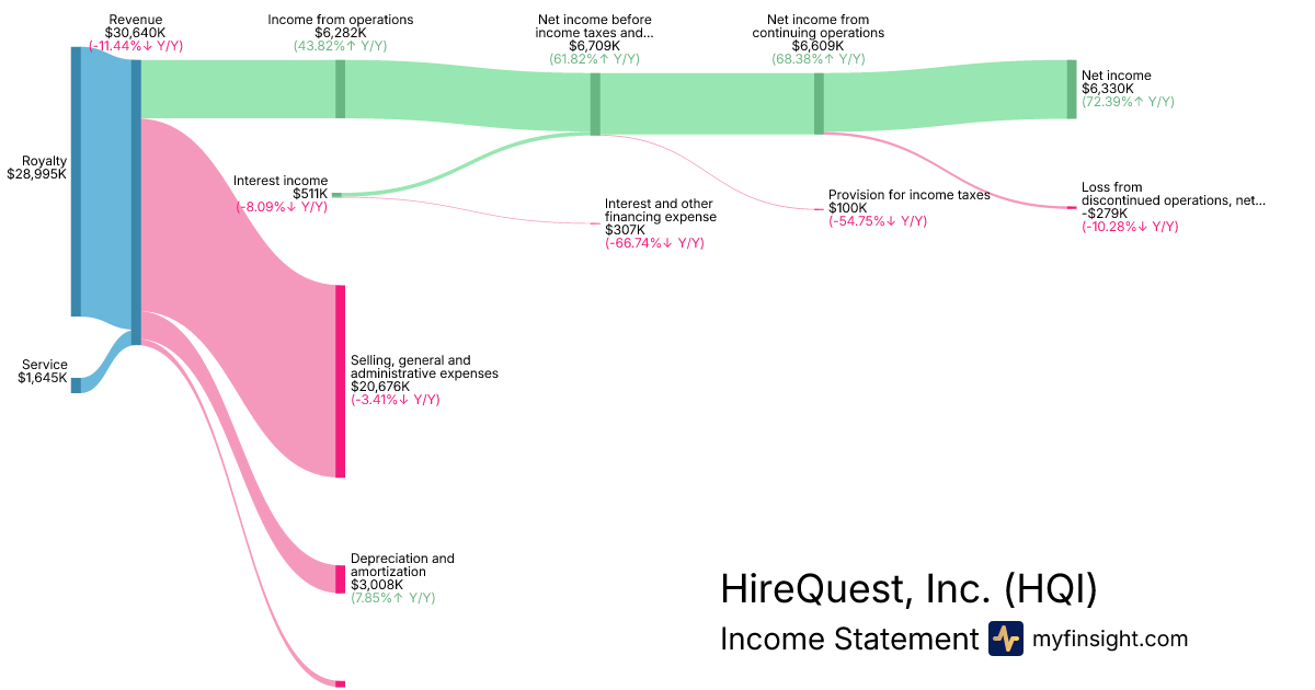 For the year ending 2025-12-31, HQI made $30,640K in revenue. $6,330K in net income. Net profit margin of 20.66%.