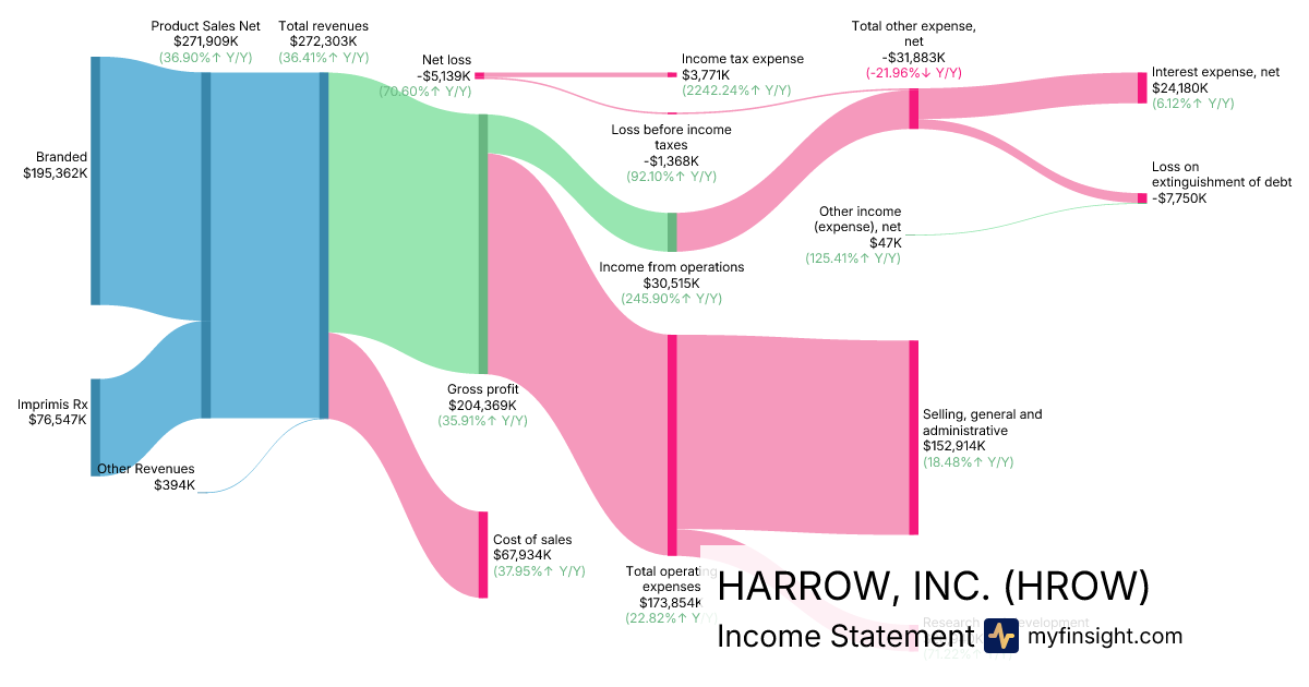For the year ending 2025-12-31, HROW made $272,303K in revenue. -$5,139K in net income. Net profit margin of -1.89%.