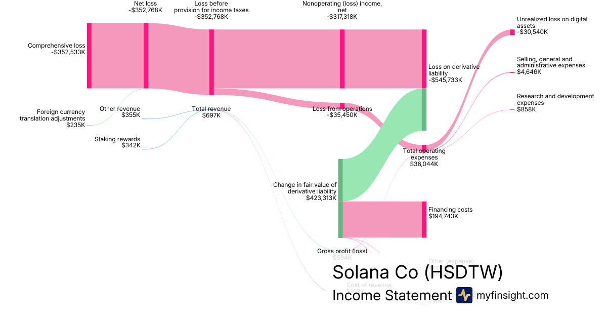 For the quarter ending 2025-09-30, HSDTW made $697K in revenue. -$352,533K in net income. Net profit margin of -50578.62%.
