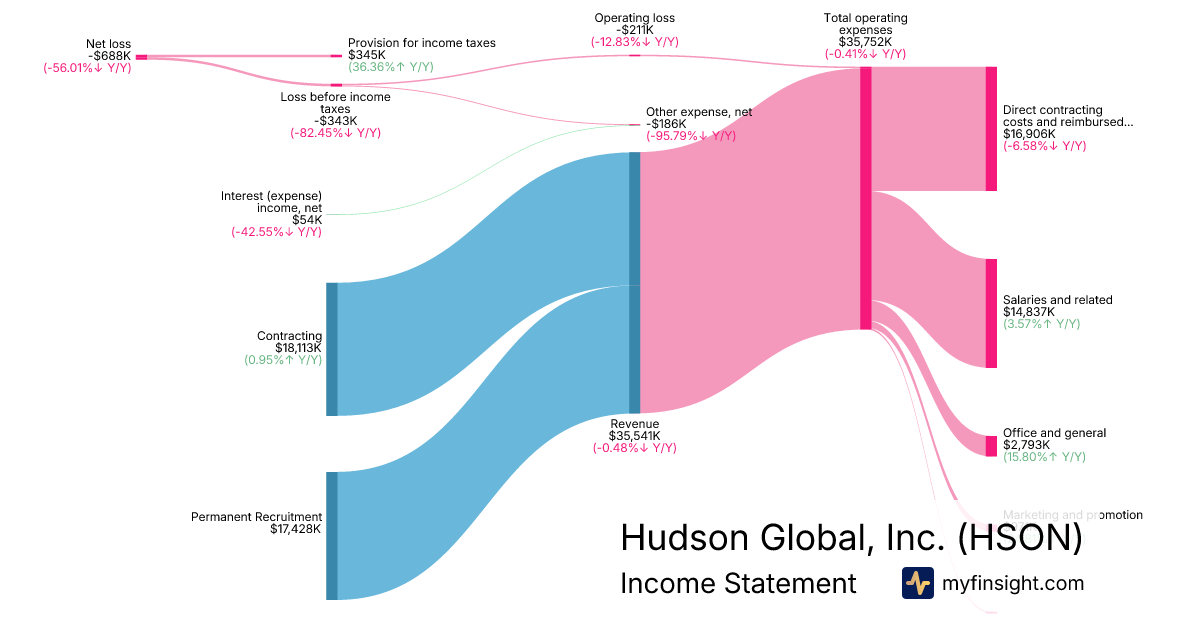 For the quarter ending 2025-06-30, HSON made $35,541K in revenue. -$688K in net income. Net profit margin of -1.94%.