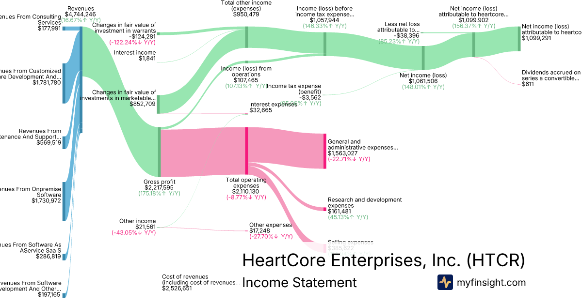 | Net income (loss) attributable to heartcore enterprises, inc | 1,099,902 | -3,086,992 | 11,057,806 | -1,951,100 |