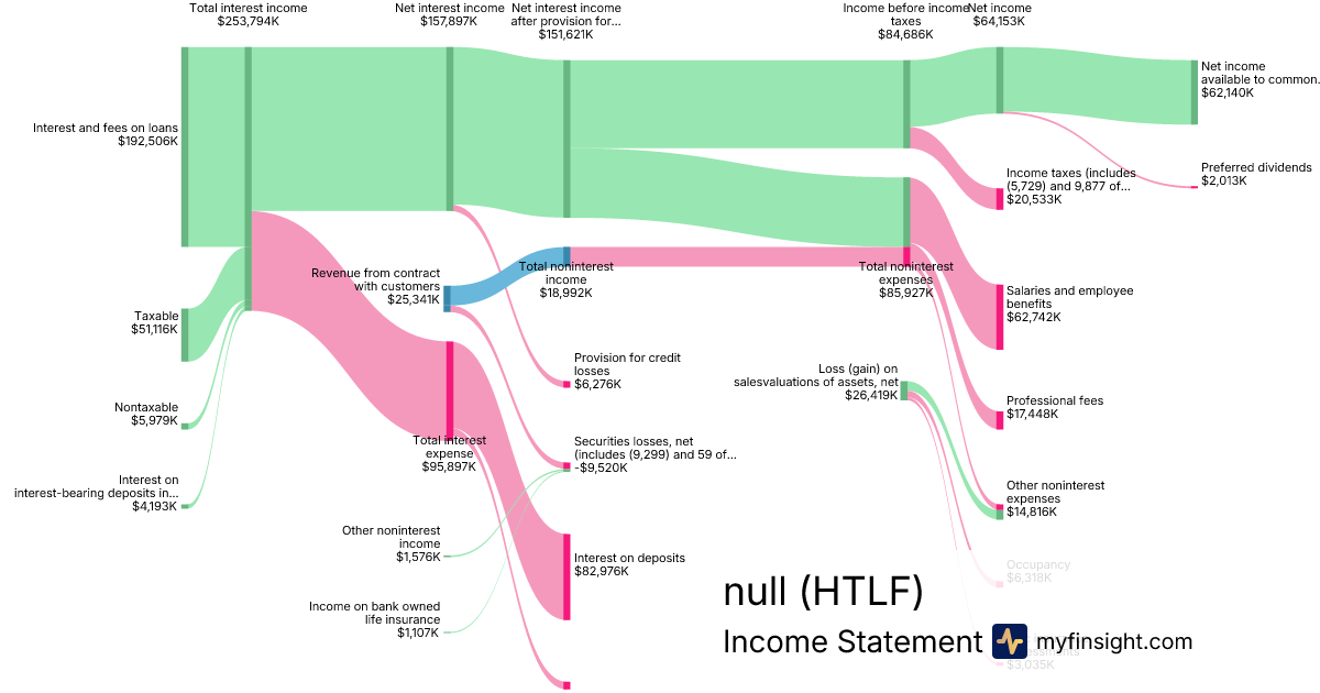 For the quarter ending 2024-09-30, HTLF made $25,341K in revenue. $62,140K in net income. Net profit margin of 245.22%.