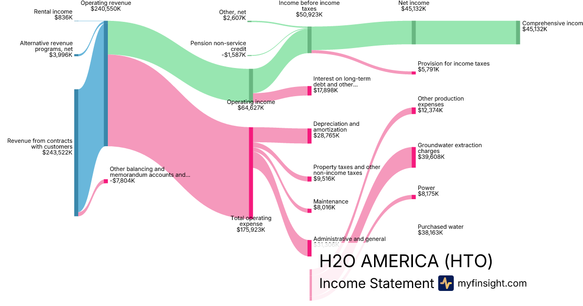 For the quarter ending 2025-09-30, HTO made $240,550K in revenue. $45,132K in net income. Net profit margin of 18.76%.