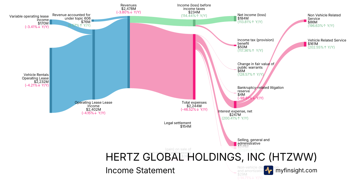 For the quarter ending 2025-09-30, HTZWW made $2,478,000K in revenue. $184,000K in net income. Net profit margin of 7.43%.