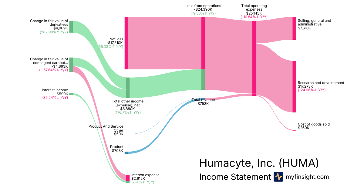 For the quarter ending 2025-09-30, HUMA made $753K in revenue. -$17,510K in net income. Net profit margin of -2325.37%.