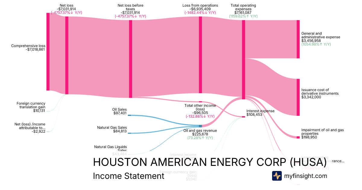 For the quarter ending 2025-09-30, HUSA made $225,678 in revenue. -$7,018,861 in net income. Net profit margin of -3110.12%.
