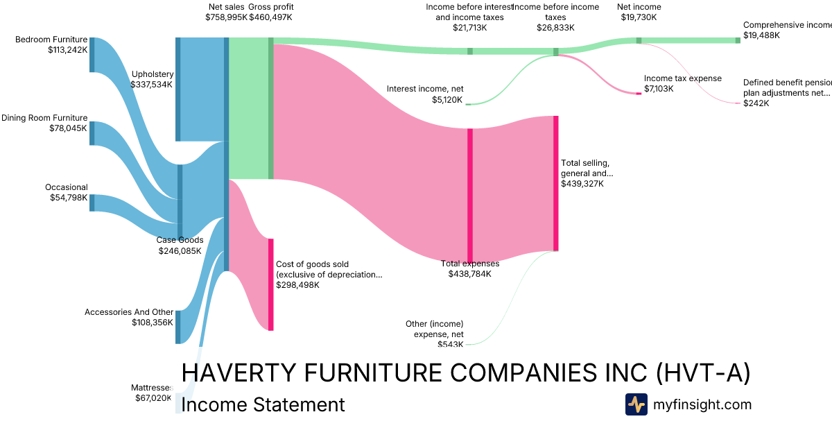For the year ending 2025-12-31, HVT-A made $758,995K in revenue. $19,488K in net income. Net profit margin of 2.57%.