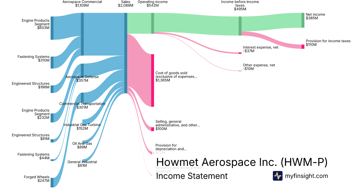 For the quarter ending 2025-09-30, HWM-P made $2,089M in revenue. $385M in net income. Net profit margin of 18.43%.