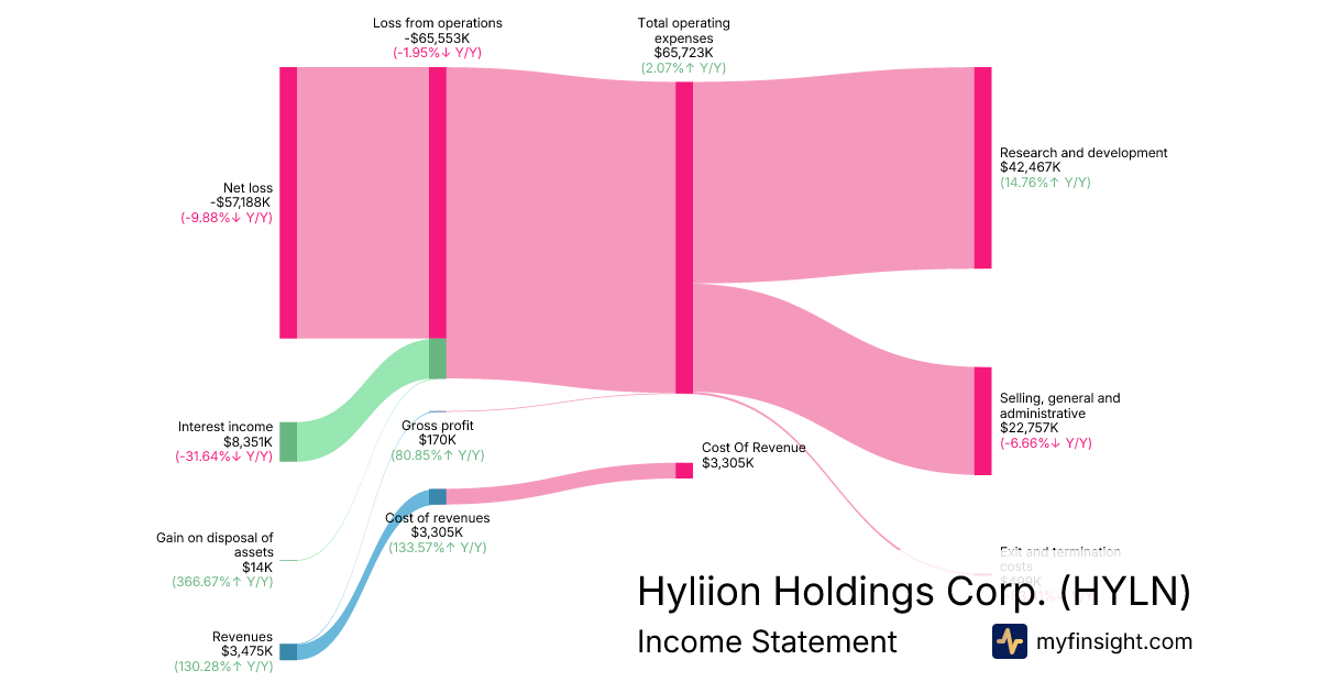 For the year ending 2025-12-31, HYLN made $3,475K in revenue. -$57,188K in net income. Net profit margin of -1645.70%.