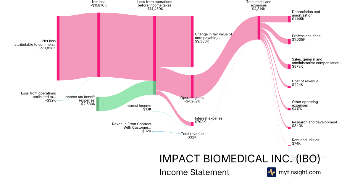 For the year ending 2025-12-31, IBO made $32K in revenue. -$11,838K in net income. Net profit margin of -36993.75%.
