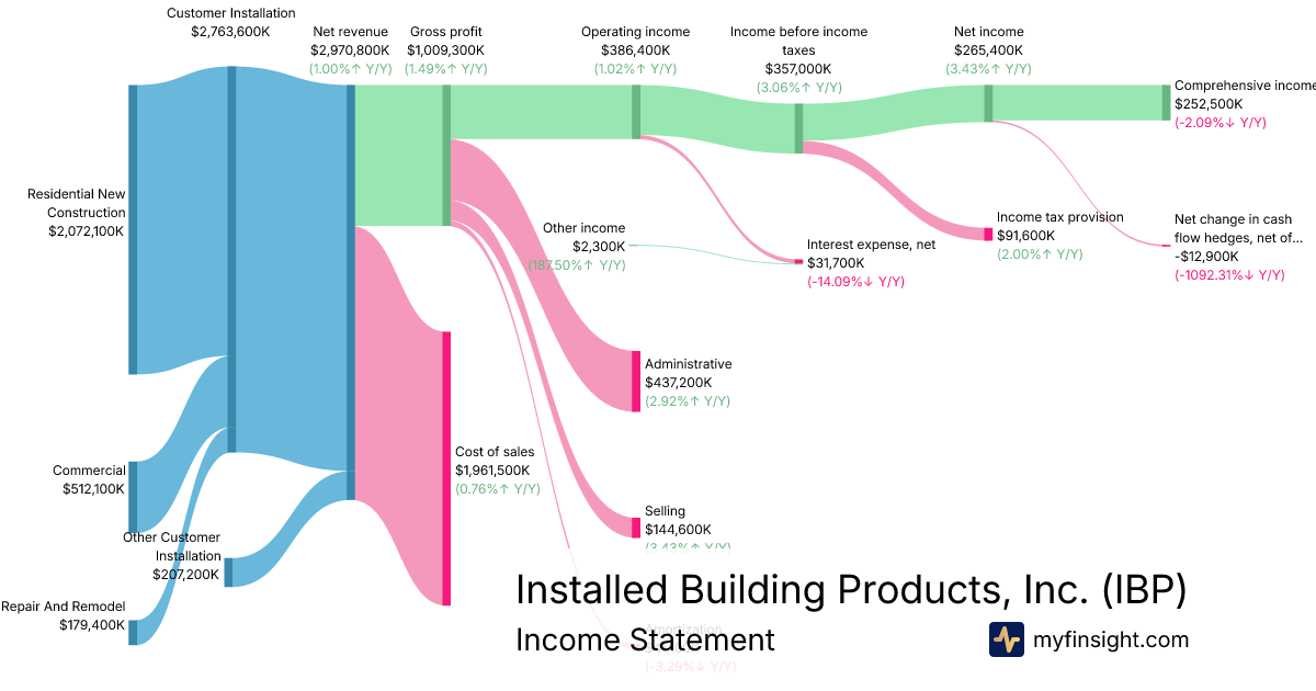 For the year ending 2025-12-31, IBP made $2,970,800K in revenue. $252,500K in net income. Net profit margin of 8.50%.