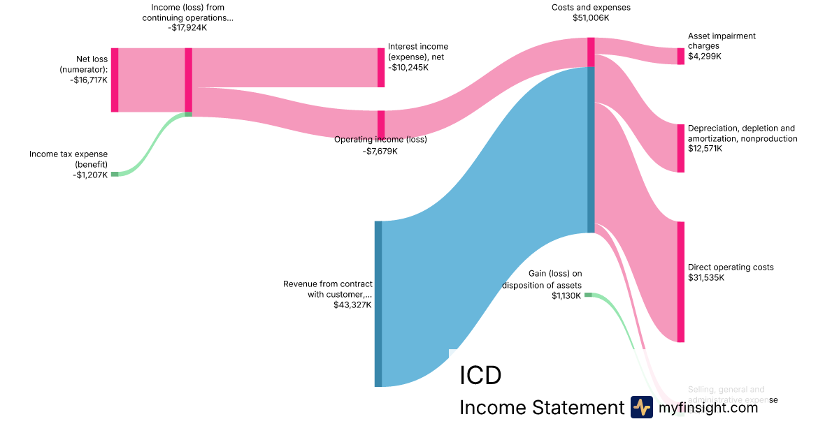 For the quarter ending 2024-06-30, ICD made $43,327K in revenue. -$16,717K in net income. Net profit margin of -38.58%.