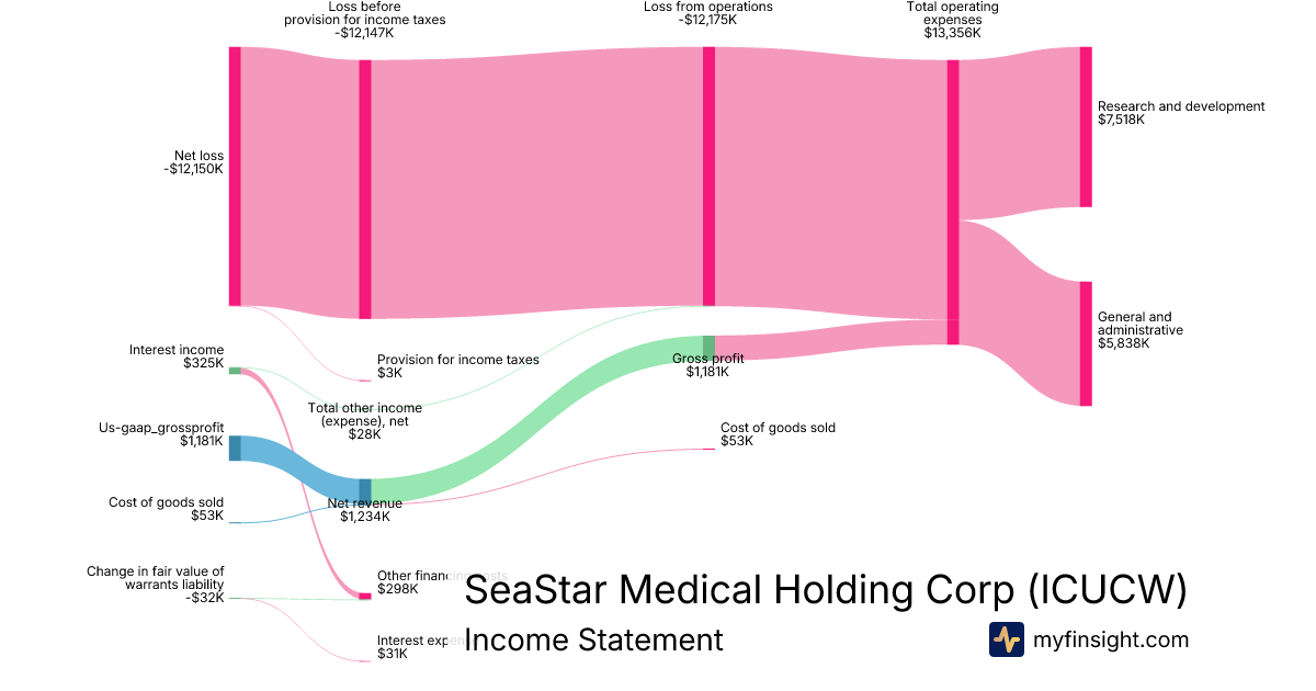 For the year ending 2025-12-31, ICUCW made $1,234K in revenue. -$12,150K in net income. Net profit margin of -984.60%.