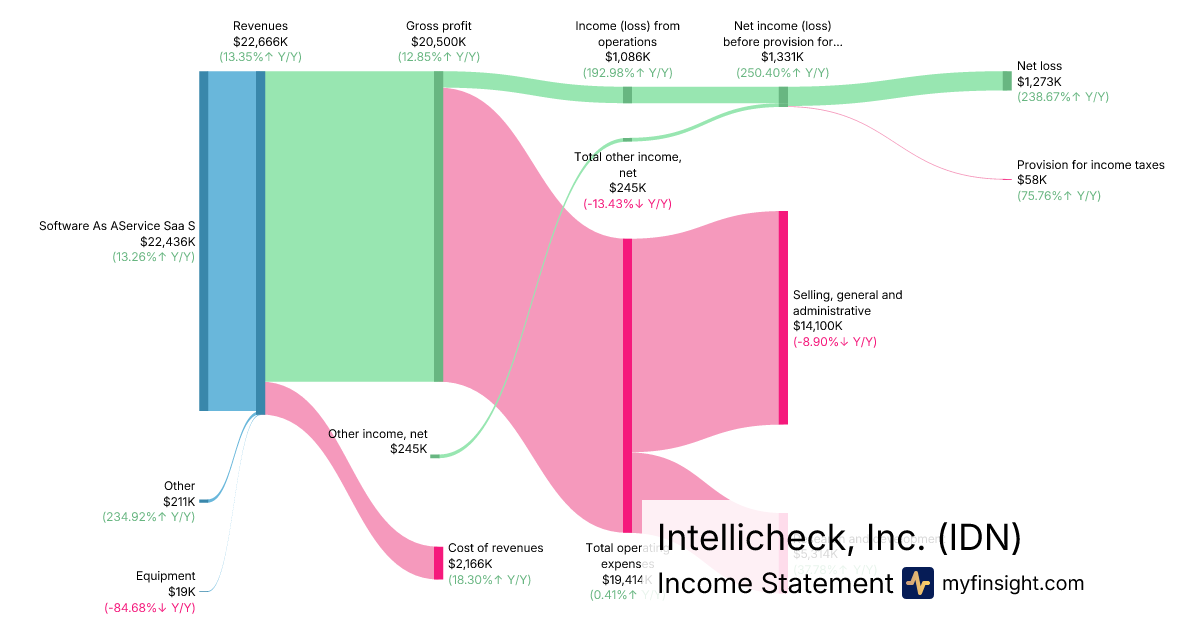 For the year ending 2025-12-31, IDN made $22,666K in revenue. $1,273K in net income. Net profit margin of 5.62%.