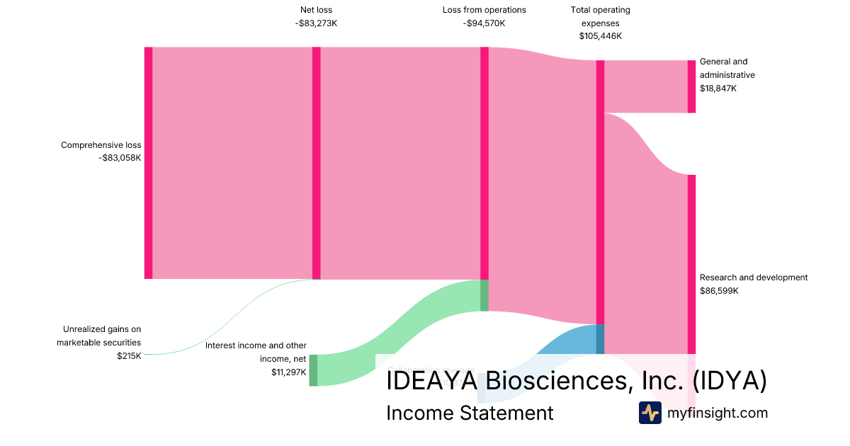 For the year ending 2025-12-31, IDYA made $218,710K in revenue. -$112,243K in net income. Net profit margin of -51.32%.