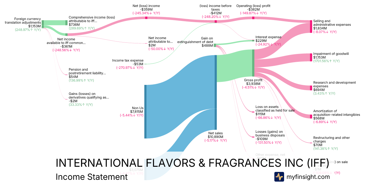 For the year ending 2025-12-31, IFF made $10,890M in revenue. $736M in net income. Net profit margin of 6.76%.