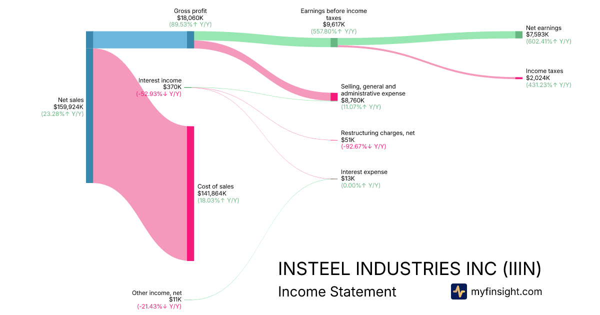 For the quarter ending 2025-12-27, IIIN made $159,924K in revenue. $7,593K in net income. Net profit margin of 4.75%.