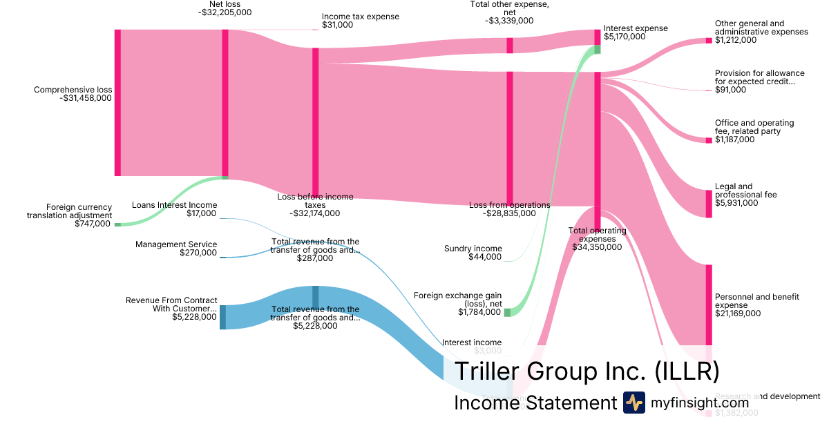 For the quarter ending 2025-06-30, ILLR made $5,515,000 in revenue. -$31,458,000 in net income. Net profit margin of -570.41%.